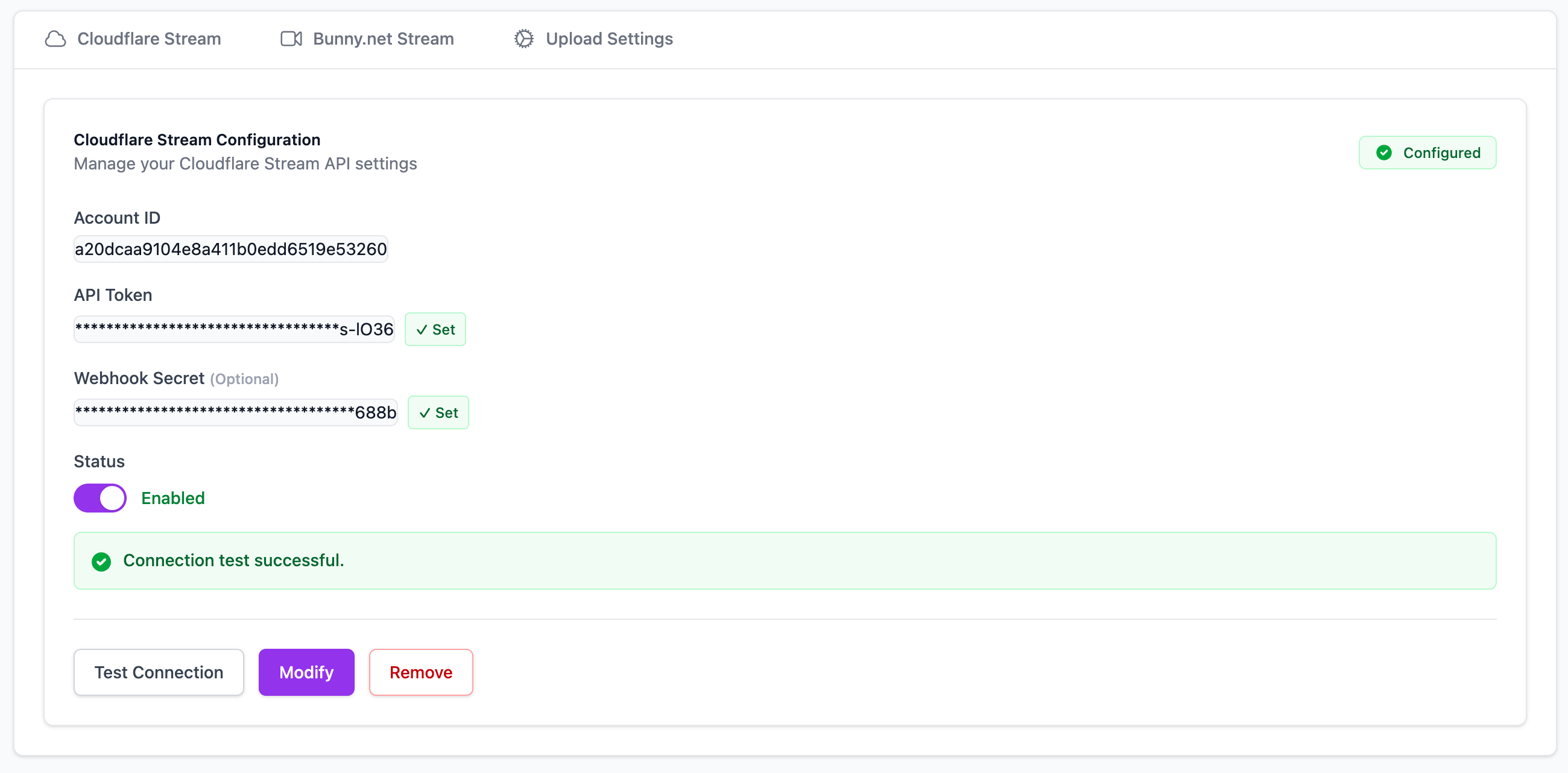- Cloudflare Stream — Configure Cloudflare Stream credentials